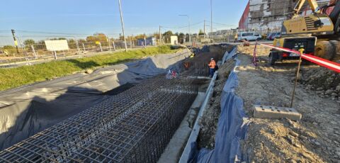 Zamontowaliśmy już 2000 m2 prefabrykowanych paneli, a całość to ok 4400 m2 paneli murów oporowych.